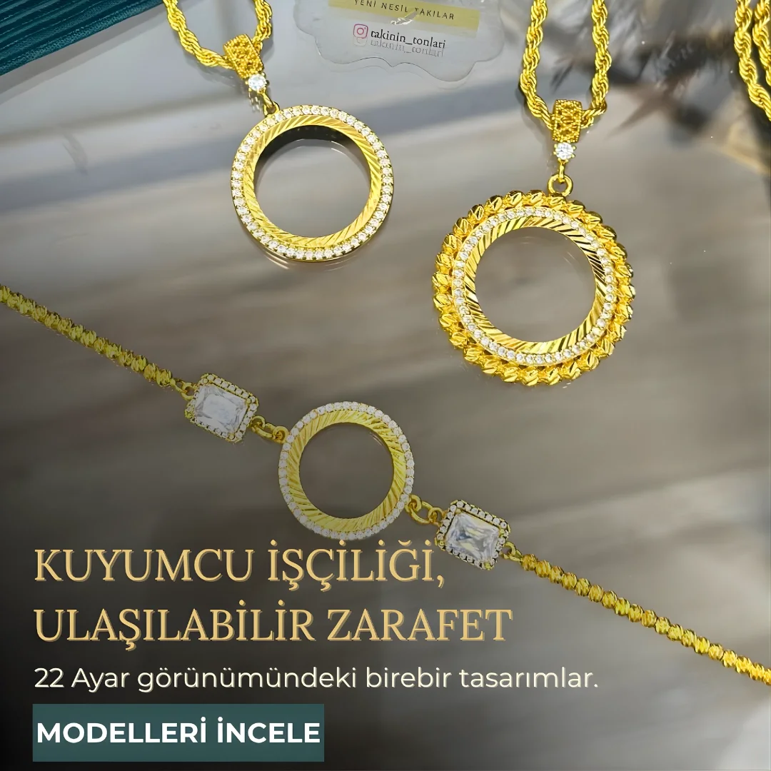 22 Ayar Burgu Detaylı Kolye Bileklik Kombini