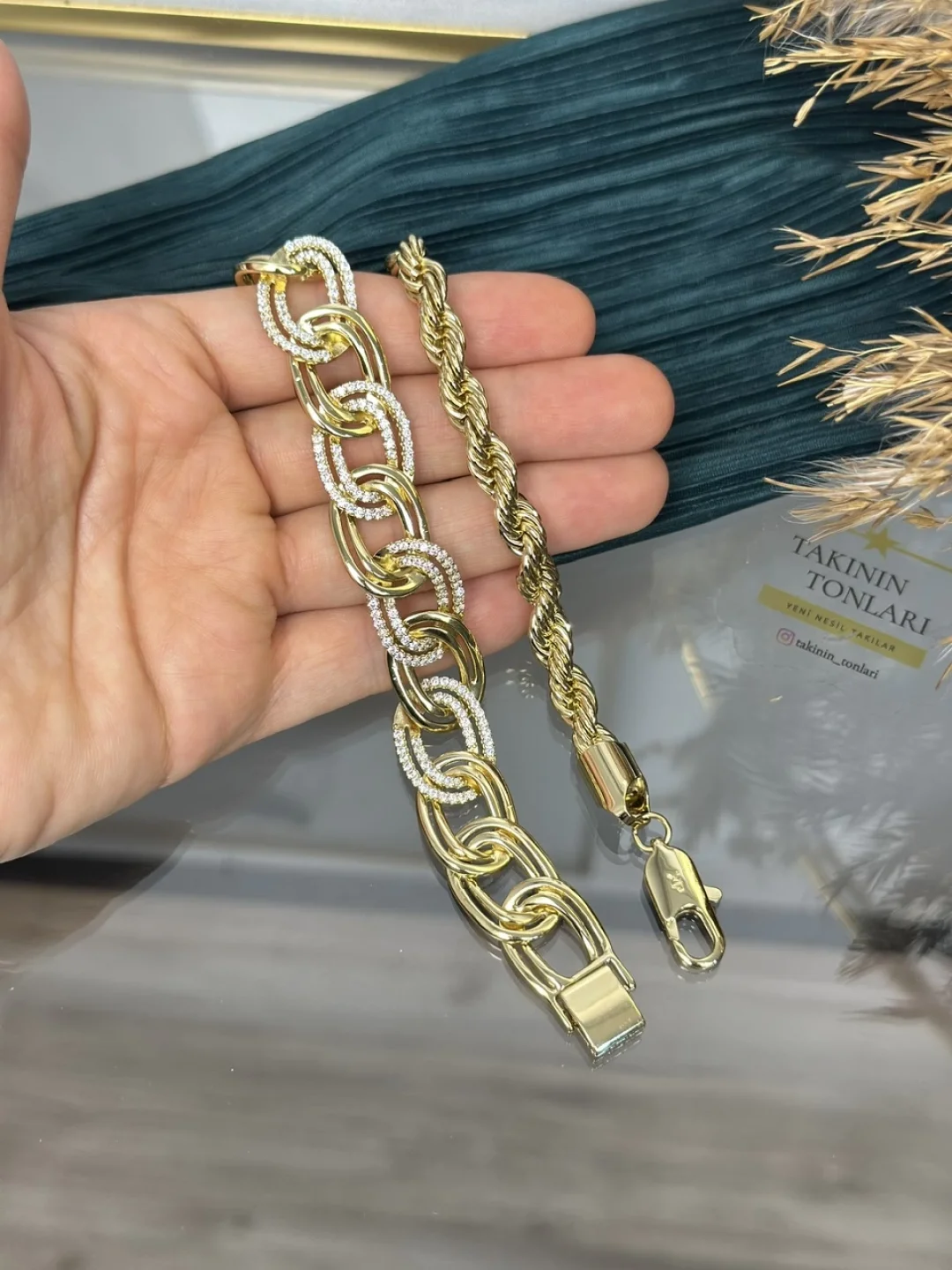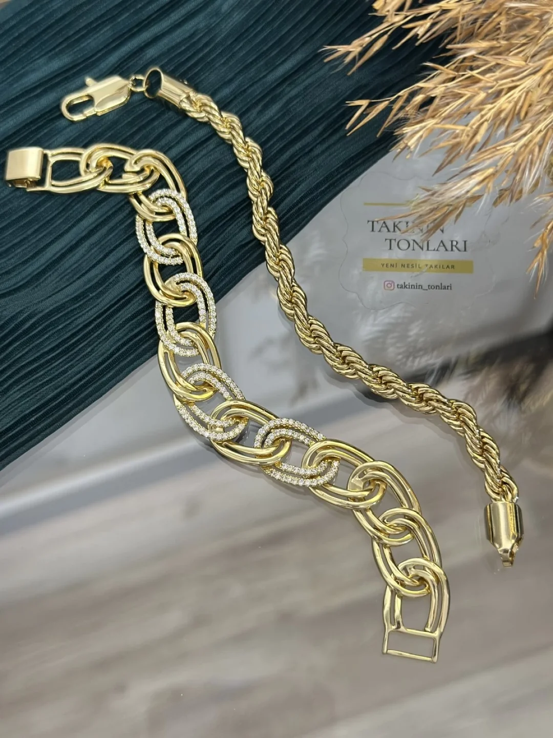 22 Ayar Taşlı Sarmal Burgu Çeyrek Bileklik