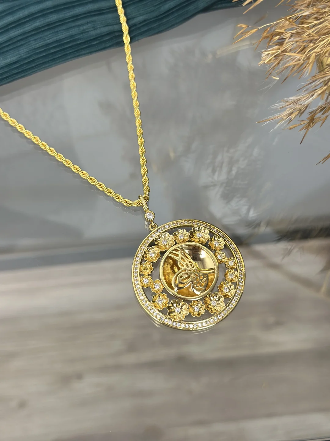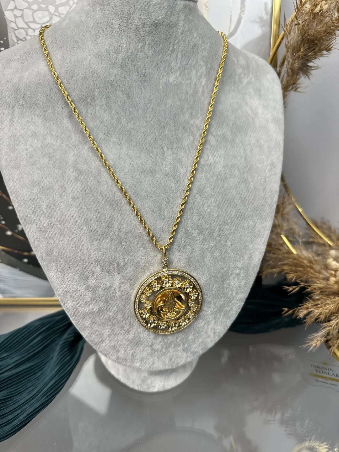 Birebir kuyumcu modeli! 22 Ayar altın kaplama, Osmanlı Tuğrası ve zarif çiçek motifleriyle bezeli bu kolye, geleneksel şıklığı modern işçilikle buluşturur. Etrafındaki zirkon taş detaylarıyla göz kamaştıran bu tasarımı, "Zincirli (Tam Takım)" veya "Sadece Kolye Ucu" olarak sipariş verebilirsiniz. Kararmaya karşı dayanıklı, antialerjik ve garantili işçilik.