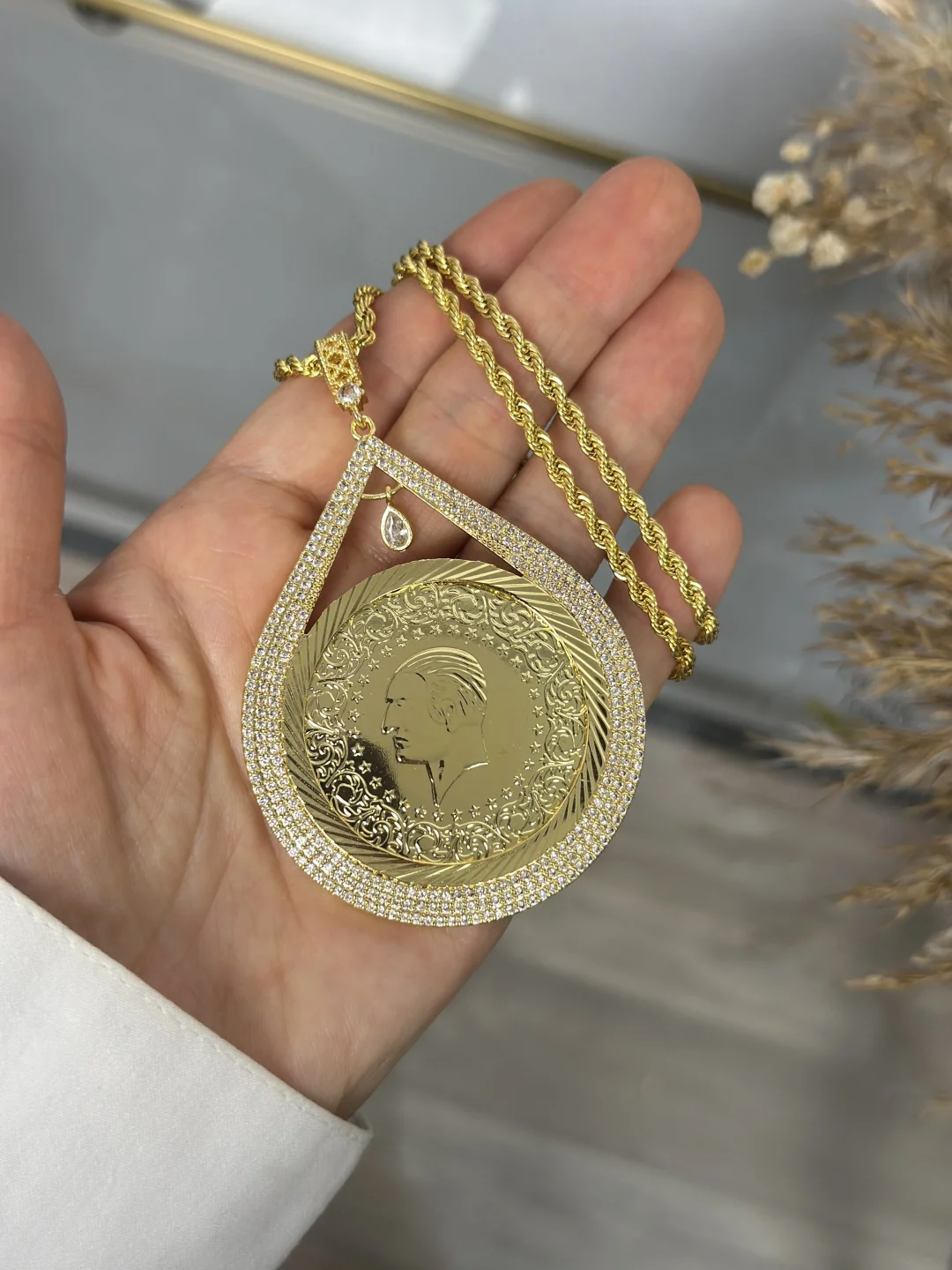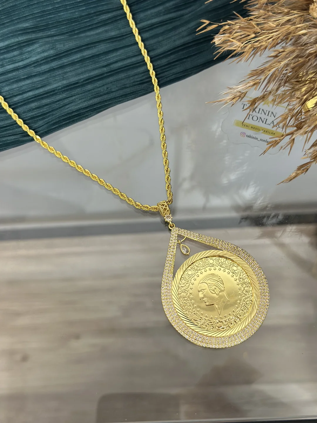 Gelenekselin en ihtişamlı hali! Birebir kuyumcu işçiliğiyle tasarlanan bu 22 Ayar Altın Kaplama Gremse Kolye, zirkon taşlı zarif damla çerçevesi ve 60 cm'lik kalın burgu zinciriyle göz kamaştırıyor. Düğünlerin ve özel günlerin vazgeçilmezi olan bu model, gerçek altından ayırt edilemeyen parlaklığıyla boynunuzda bir servet gibi duracak. Kararmaz, antialerjiktir.