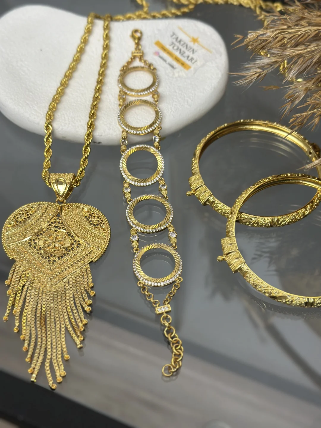 ✔ Birebir Kuyumcu İşçiliği: Setteki her parça, gerçek altın kalıplarında, 1. sınıf işçilikle üretilmiş, orijinaline birebir yakın, kusursuz bir görünüm sunar.