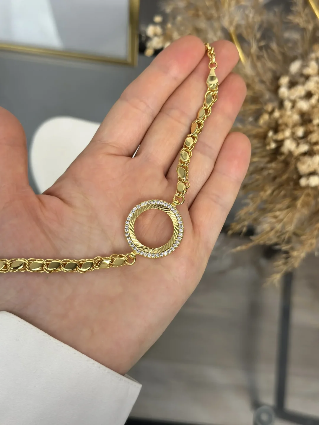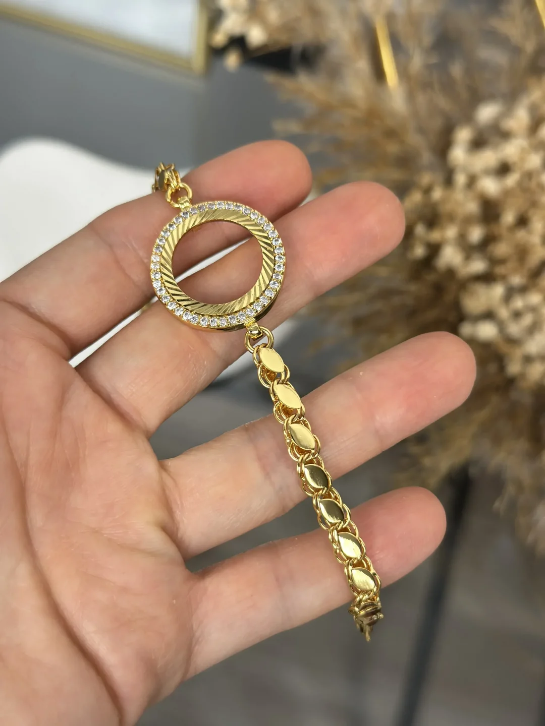 Bu bileklik, birebir kuyumcu modelinde, 1. sınıf işçilikle ve 22 ayar altın kaplama ile üretilmiştir.