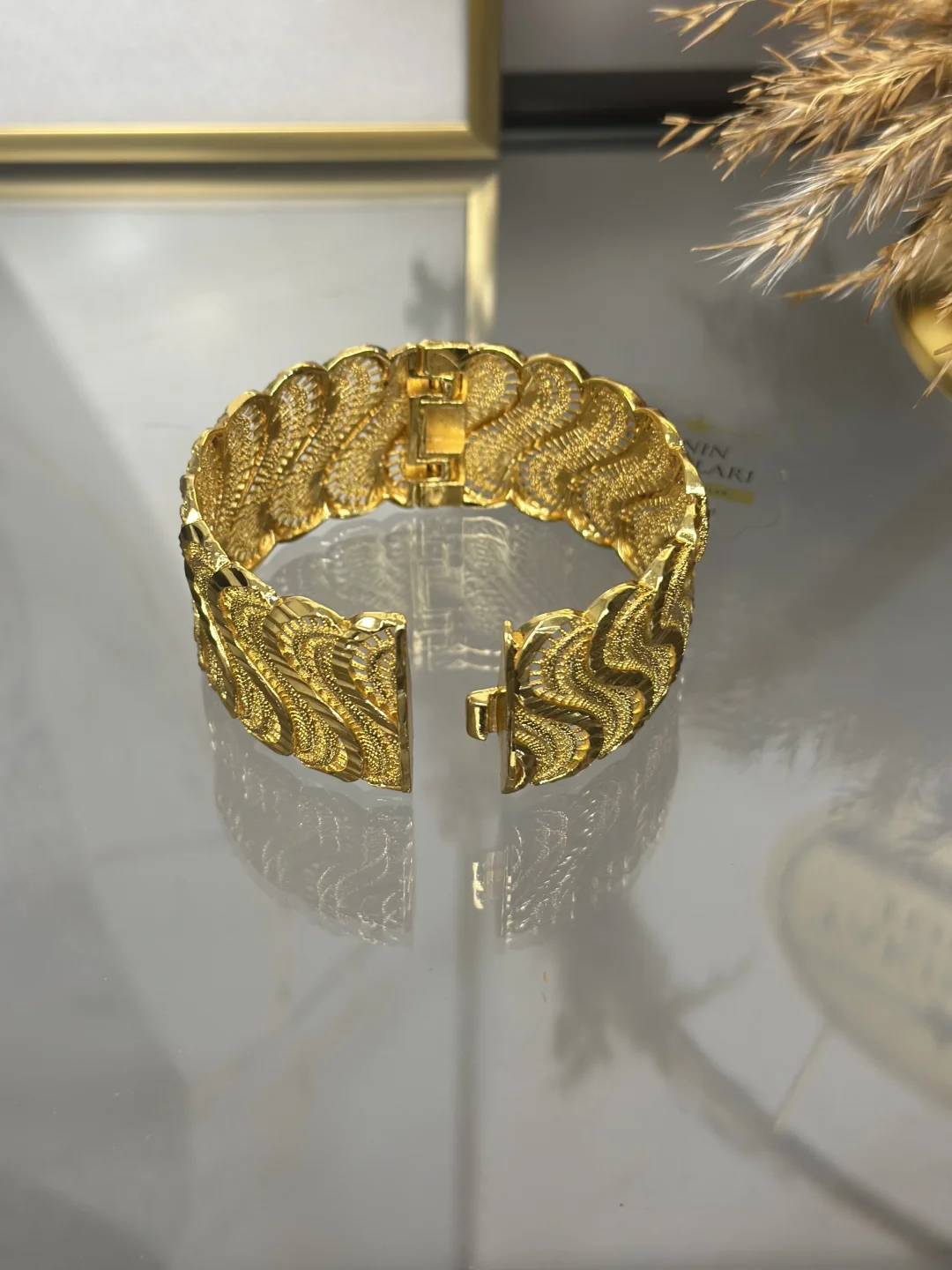 Gelenekselin İhtişamı: 22 Ayar Altın Kaplama Telkari Geniş Kelepçe! ✨