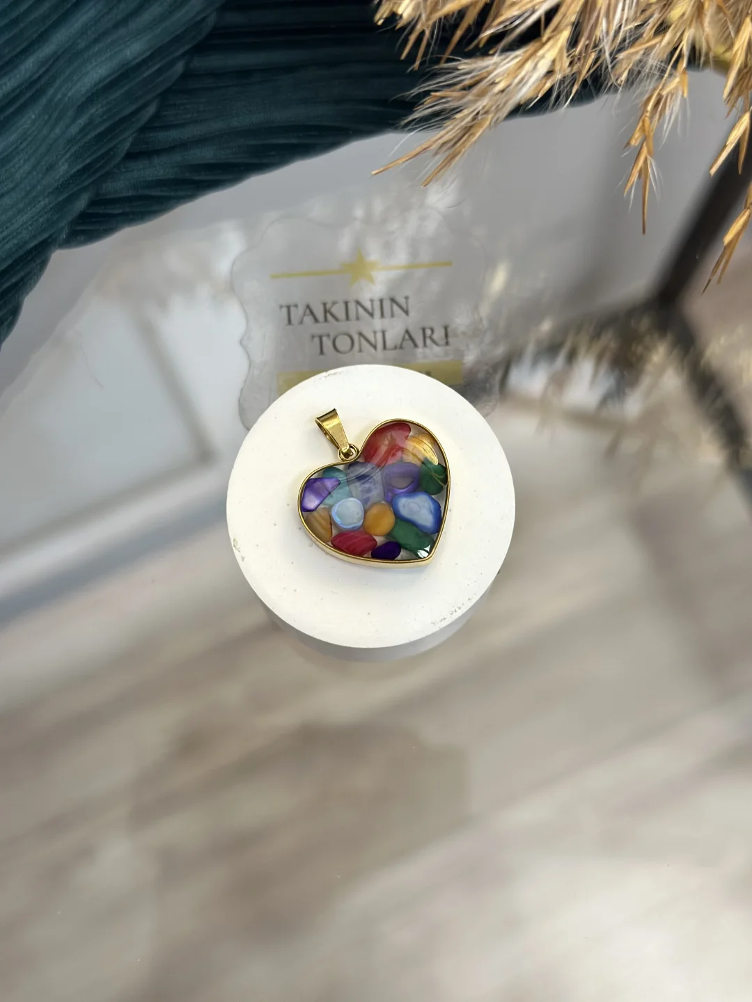 ✔Eşsiz ve El Yapımı Tasarım: Bu bir yekpare (solid) taş değildir. Gerçek taş parçacıkları, şeffaf ve dayanıklı bir reçine ile birleştirilerek bu eşsiz kalp şekli verilmiştir. Bu sayede her bir kolye ucu, içindeki renkli desenle benzersiz ve tektir.
