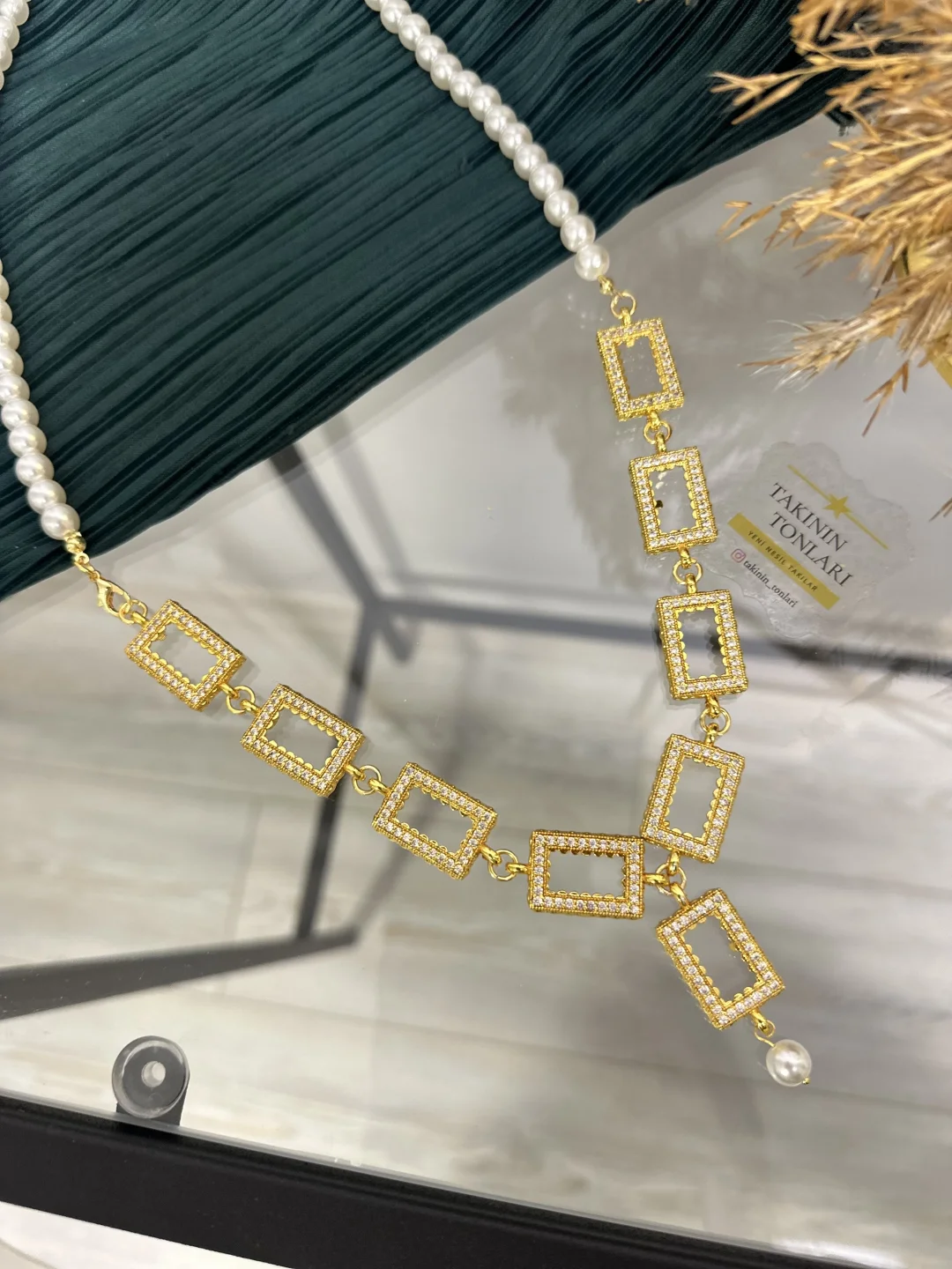 Zincir Yapısı: Bir tarafı Sıralı İnci, bir tarafı Gold Zincir.