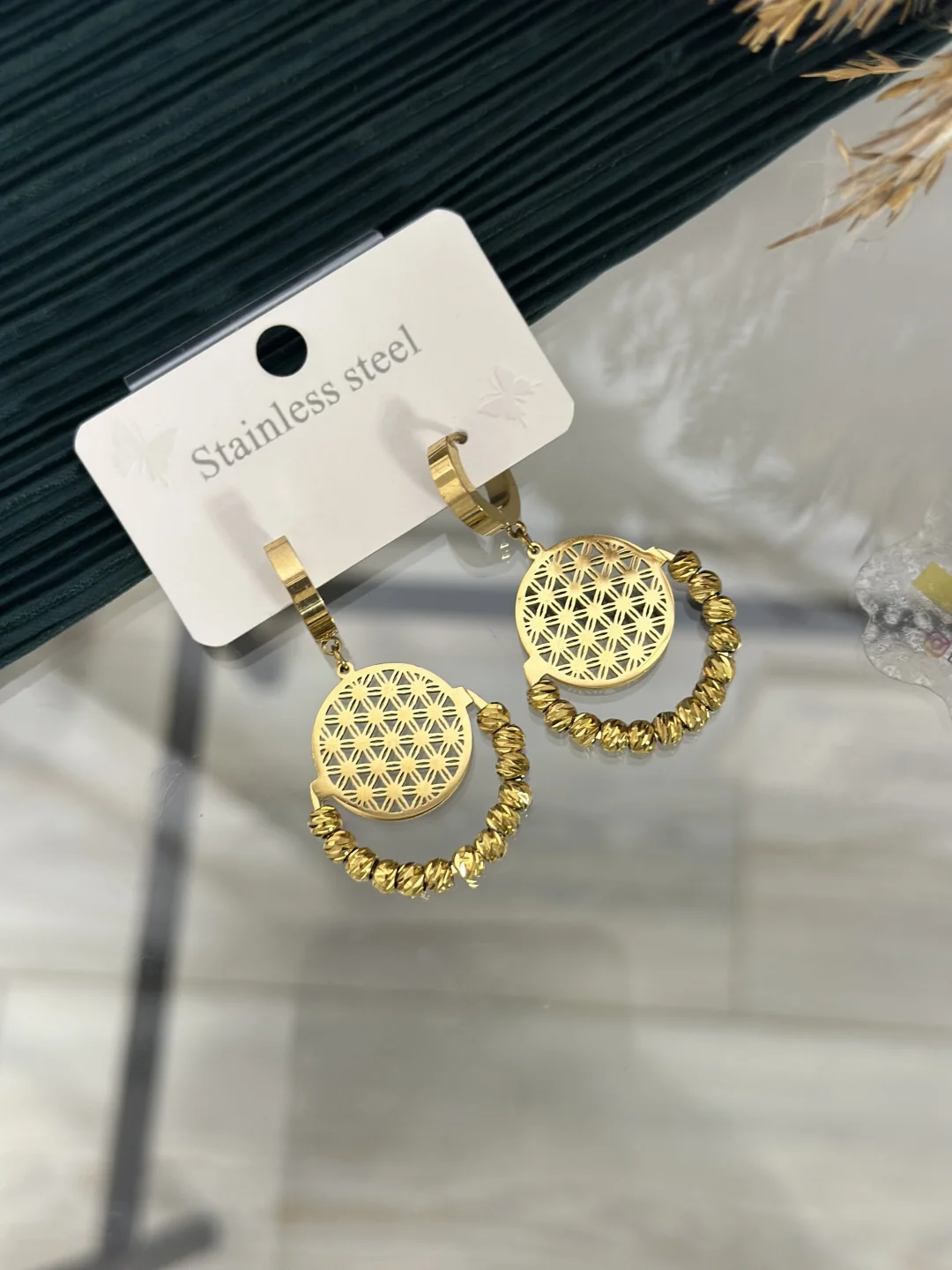 Pozitif enerji ve zarafet kulağınızda! 316L Paslanmaz Çelikten üretilen, Gold renkli Yaşam Çiçeği (Flower of Life) küpe. Alt kısmını çevreleyen ışıltılı Dorika Toplar ile hareketlendirilen bu tasarım, hem spiritüel anlamı hem de kararmayan kalitesiyle günlük şıklığınızın vazgeçilmezi olacak.
