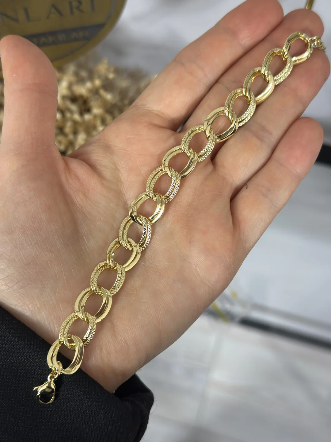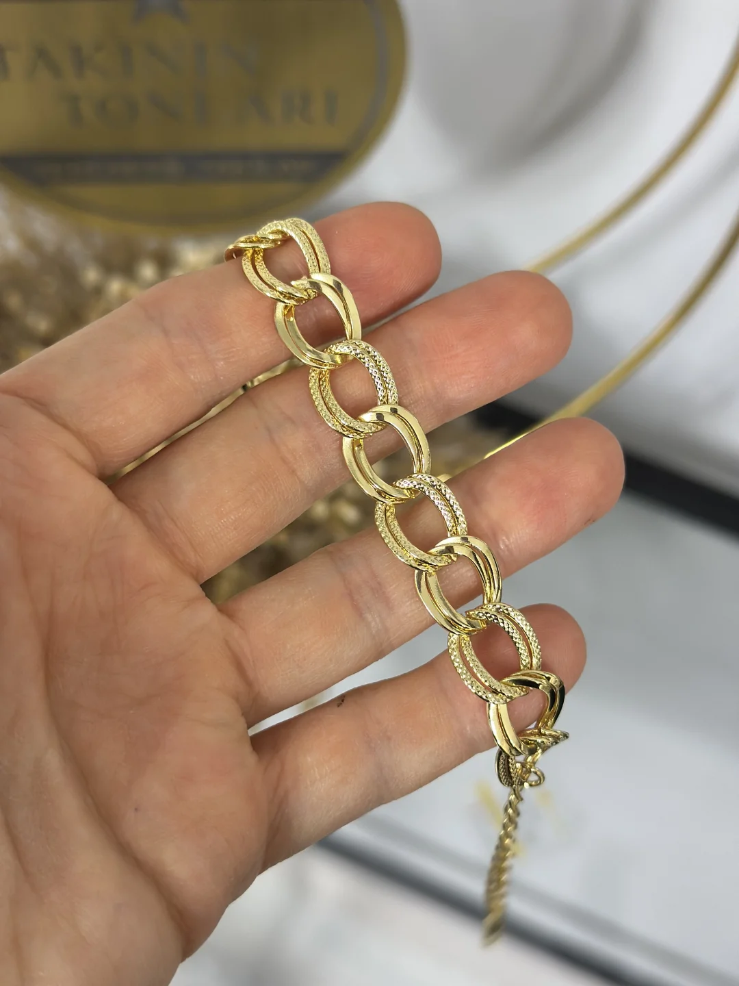 Kuyumcu vitrinindeki 22 ayar altın versiyonuyla ayırt edilemeyecek kadar kalitelidir. 316L Paslanmaz Çelik olduğu için duşta, denizde, havuzda kararmaz; yıllarca ilk günkü ışıltısını korur.