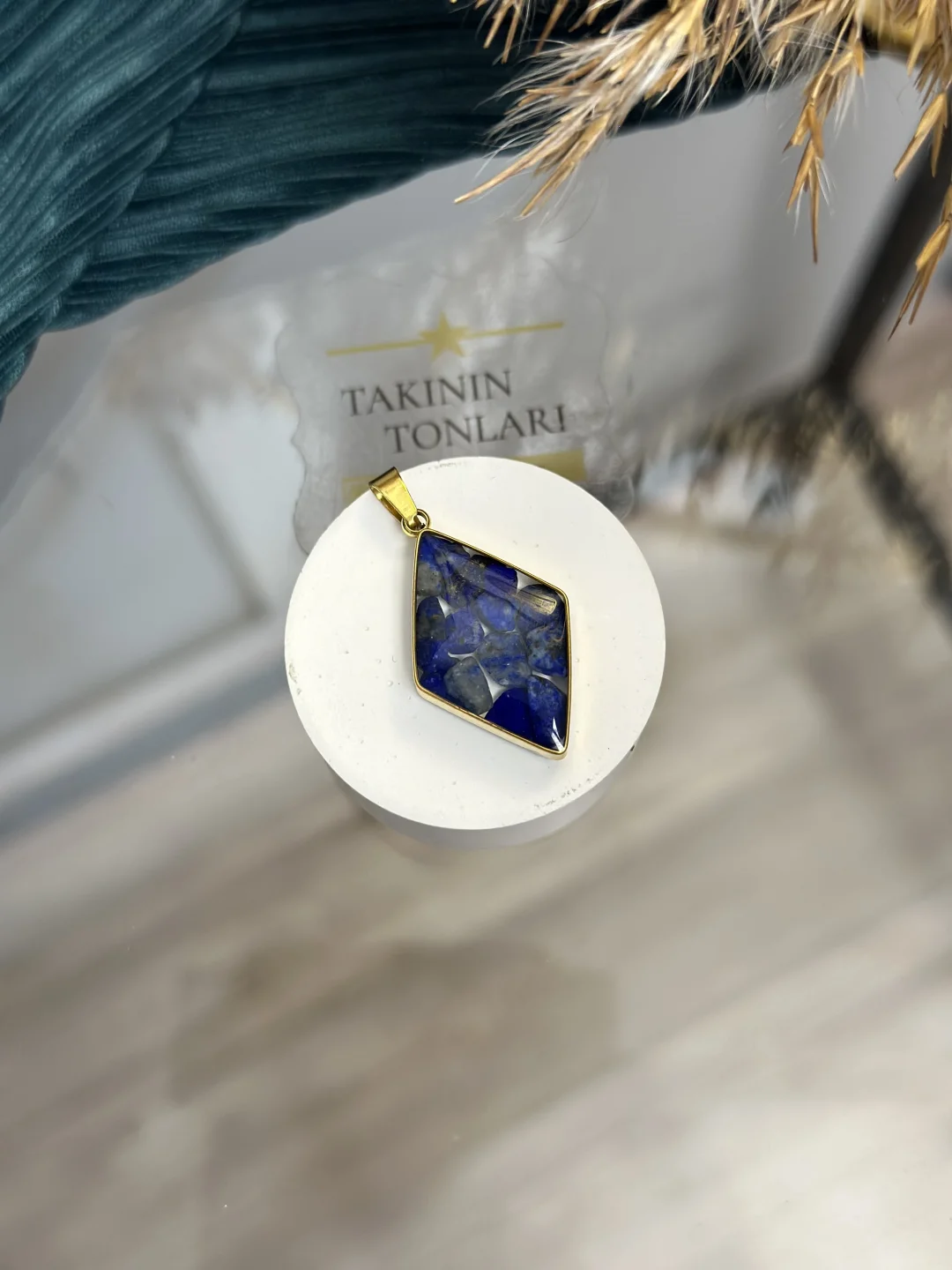 Antik çağlardan beri "Bilgelik Taşı" ve "Kraliyet Taşı" olarak bilinen "Lapis Lazuli", bu şık baklava (diamond) tasarımında stilinize derin ve asil bir enerji katıyor. Bu özel "el işçiliği" kolye ucu, kendine has gök mavisi/lacivert tonları ve pirit ışıltılarına sahip gerçek Lapis Lazuli taşı parçacıklarının bir araya getirilmesiyle oluşturulmuştur.