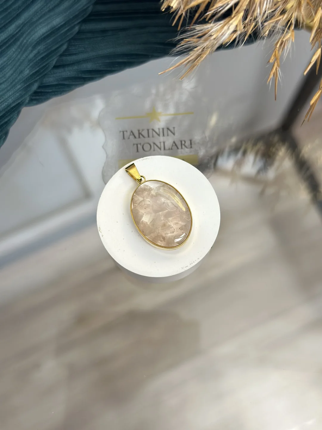 Doğanın Sevgi Dolu Dokunuşu: Pembe Kuvars Oval Model Çelik Kolye Ucu! ✨❤