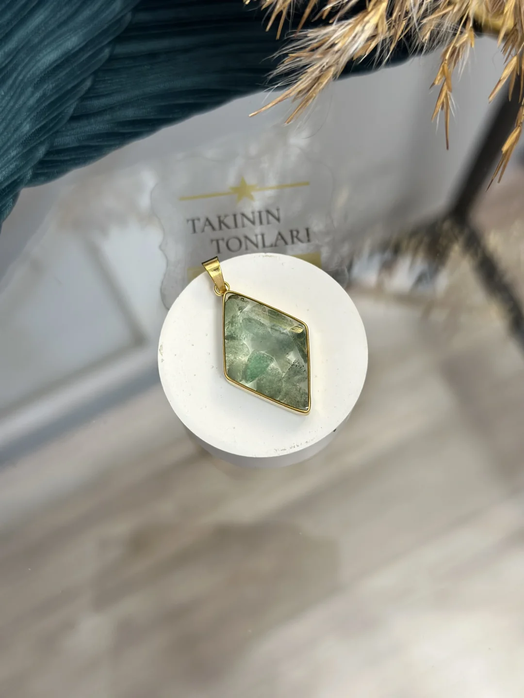 Not: Her bir kolye ucu el yapımı olup, içindeki taş parçacıklarının dağılımı, yoğunluğu ve deseni nedeniyle benzersizdir ve fotoğraftakinden küçük farklılıklar gösterebilir.