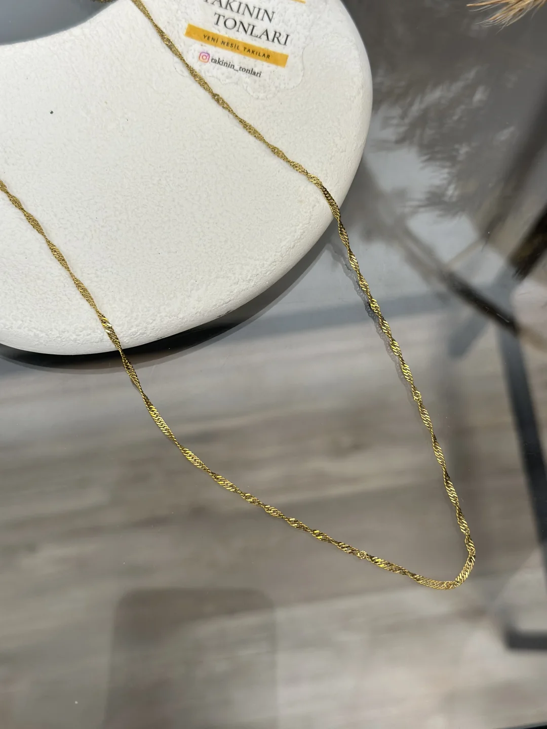 ✔Zarif Singapur Modeli: İnce, burgulu "Singapur" zincir tasarımı, kolyeye zarif ve ışıltılı bir görünüm kazandırır.