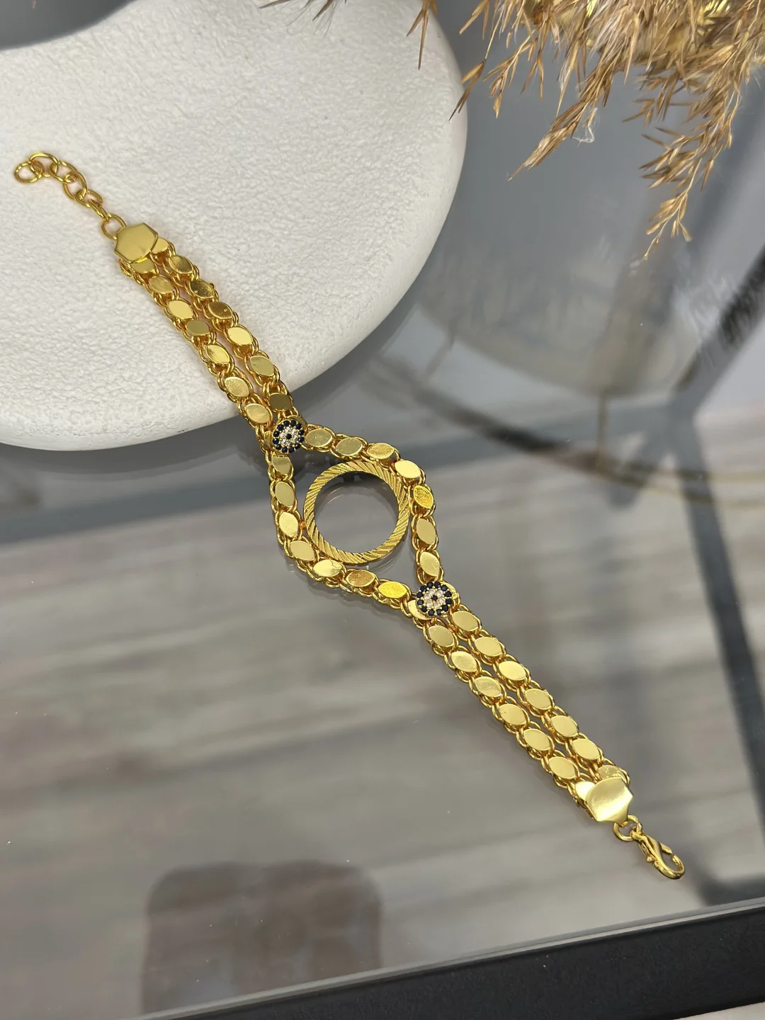Bileği Dolduran İhtişam: Çeyreklik Nazarlı Çift Sıra Arpa Bileklik ✨
