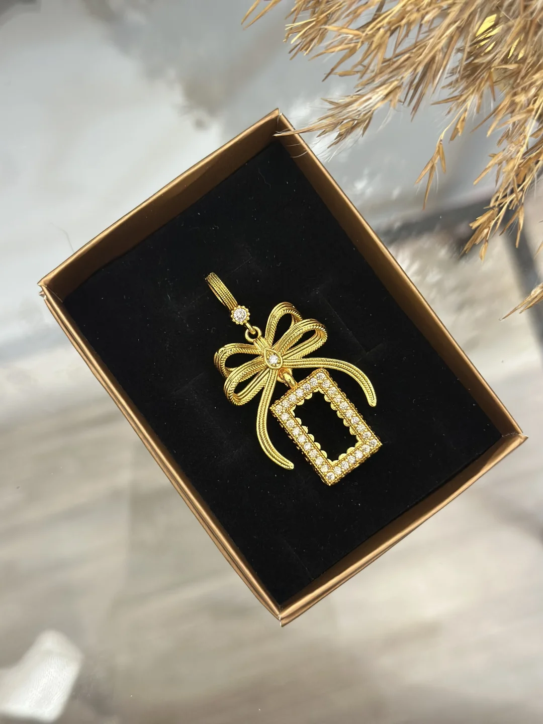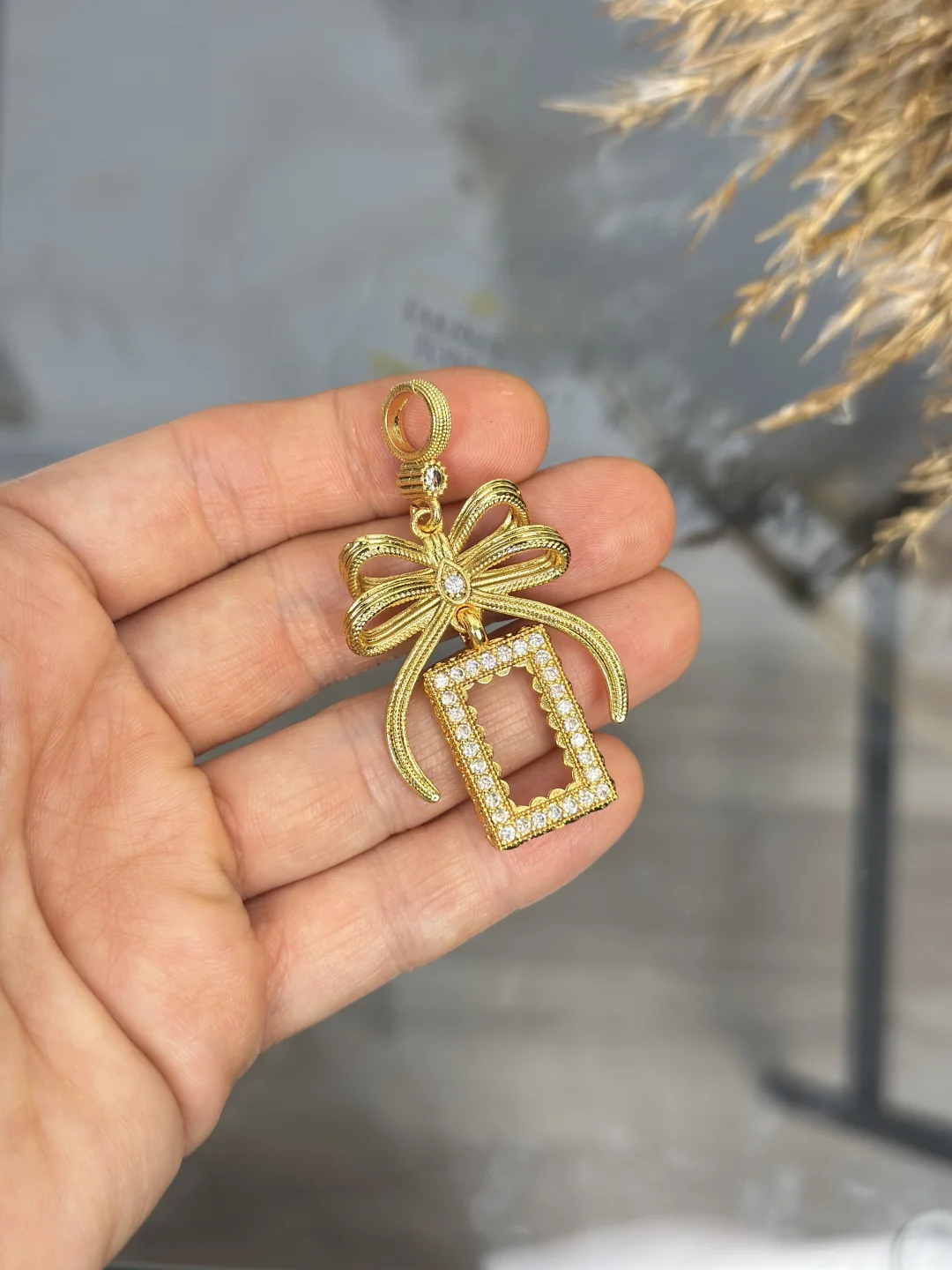 Yatırımınızı Zarafetle Çerçeveleyin: Gram Altın Çerçeveli Fiyonk Kolye Ucu ✨