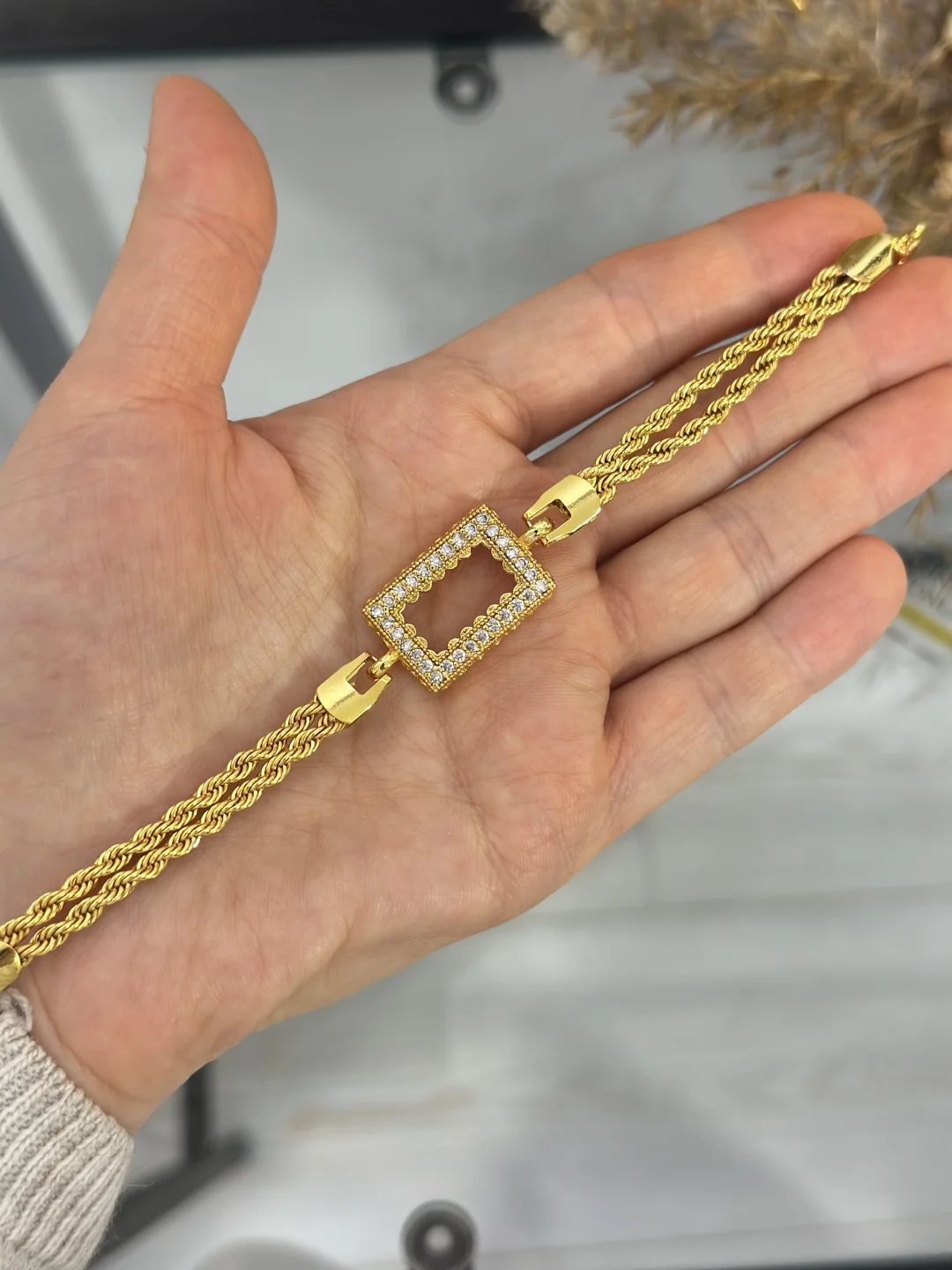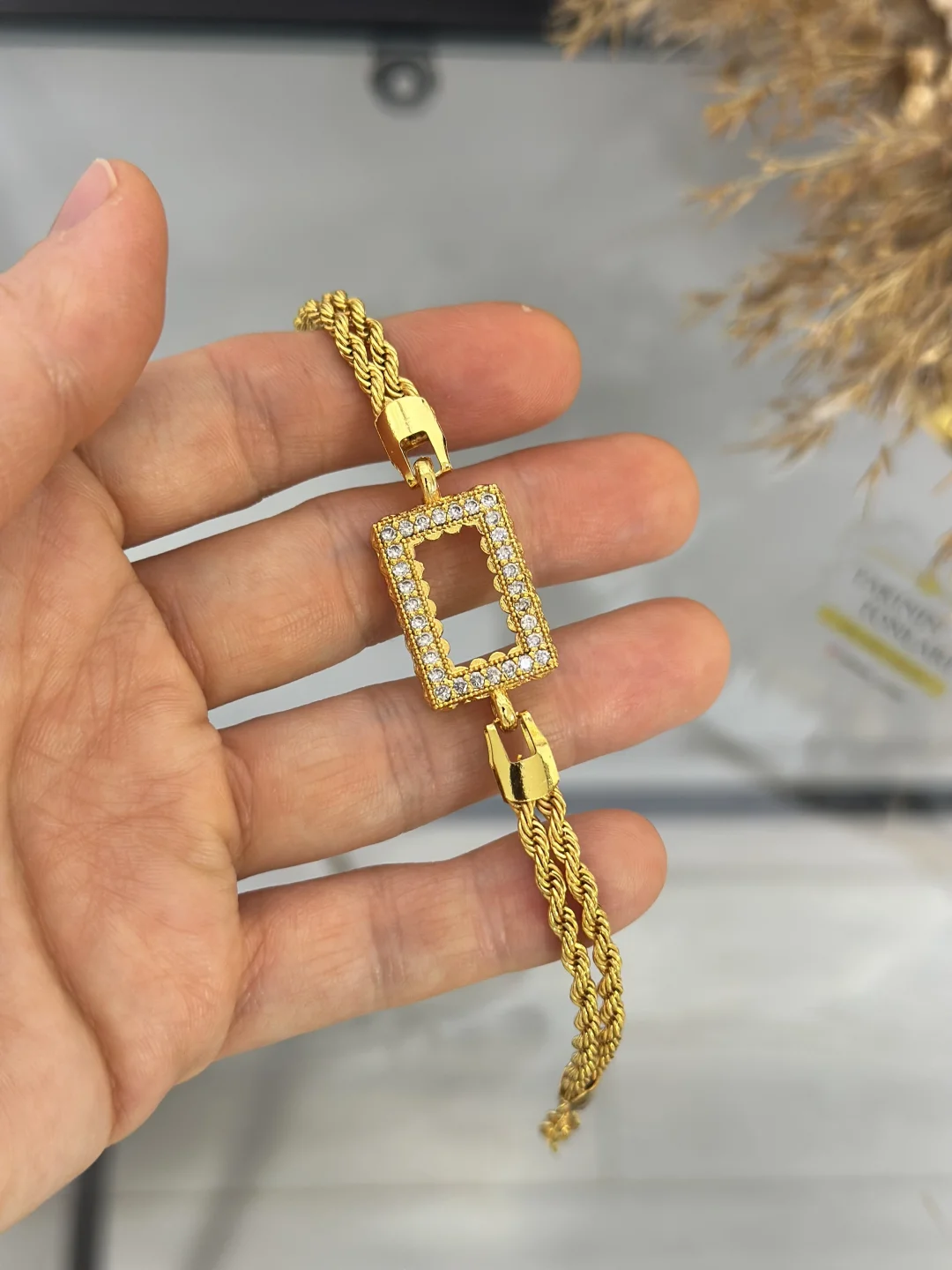 Bilekte Güçlü Duruş: Dikdörtgen Çift Sıra Burgu Bileklik ✨