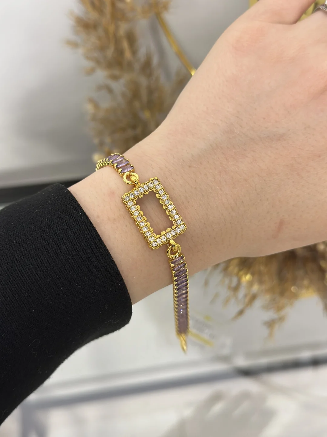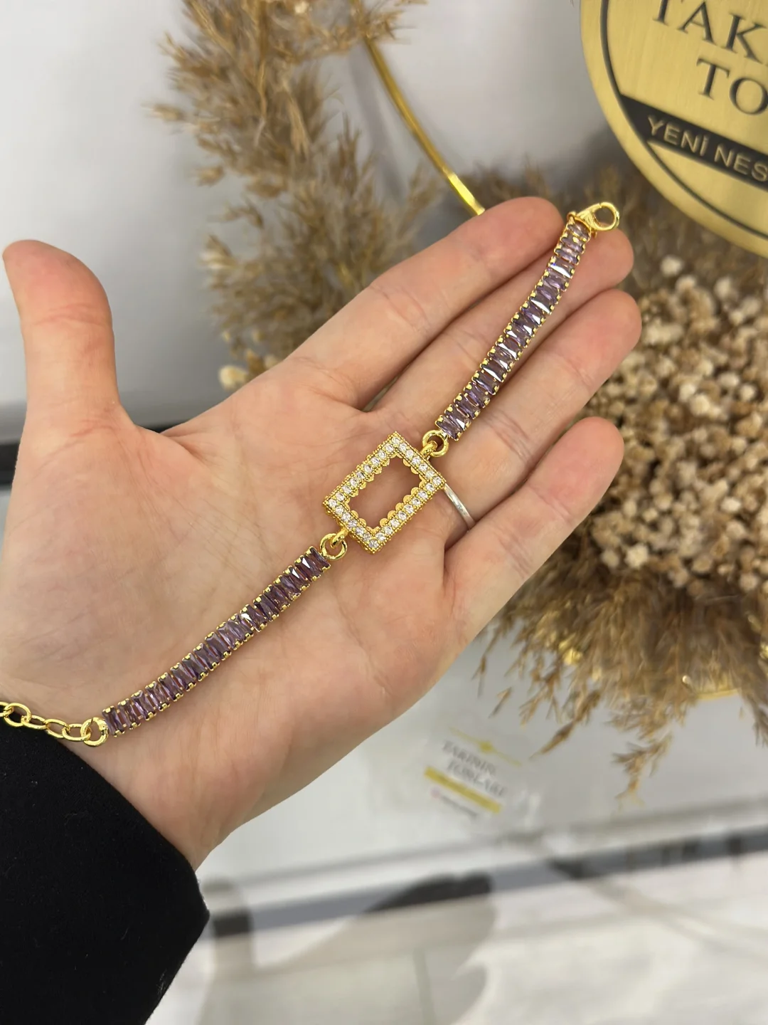 Tarih boyunca sarayların ve asaletin rengi olan mor (ametist tonu), gold kaplamanın sıcaklığıyla birleşince ortaya inanılmaz "lüks" bir görünüm çıkıyor. Bilekliğin merkezindeki taşlı dikdörtgen çerçeve, standart 1 gramlık dikdörtgen altınızı (birikiminizi) sıradan bir yatırım aracı olmaktan çıkarıp, paha biçilemez bir mücevhere dönüştürüyor.