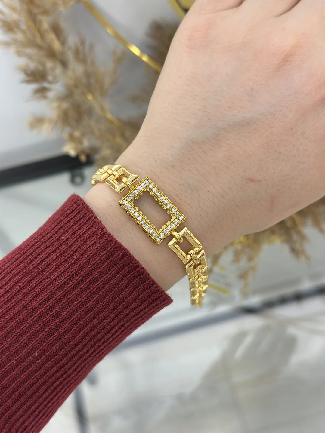 Tasarımın gövdesini oluşturan Kare/Dikdörtgen Baklalar, klasik yuvarlak zincirlere göre çok daha şehirli ve modern bir duruş sergiler. Bilekte kalıp gibi duran bu zincir yapısı, merkezdeki taşlı çerçeveye yerleştireceğiniz 1 gramlık altınınızı (dikdörtgen) kusursuzca taşır.