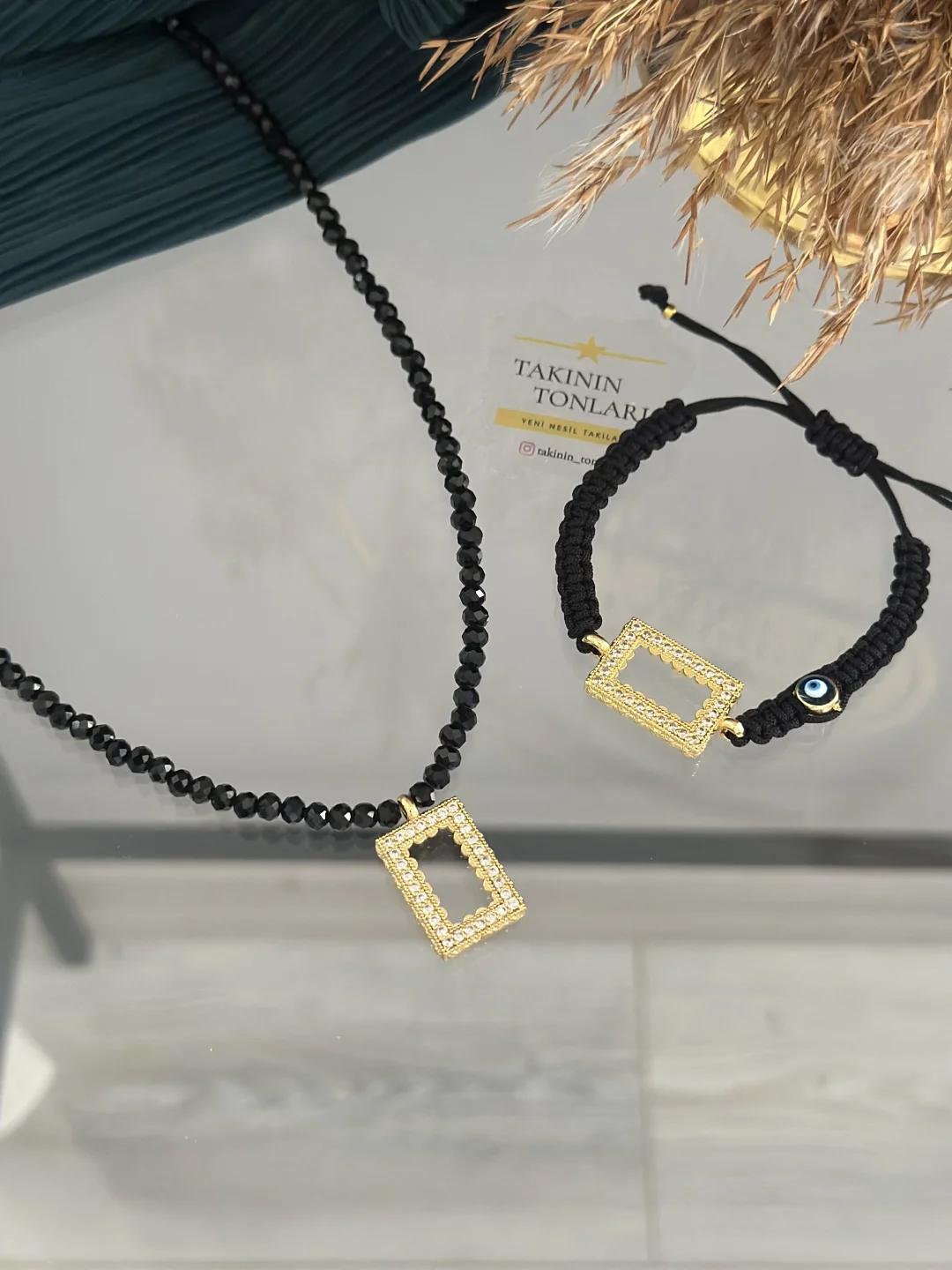 Paket İçeriği: 1 Adet Siyah Kristal Kolye + 1 Adet Siyah Makrome Bileklik