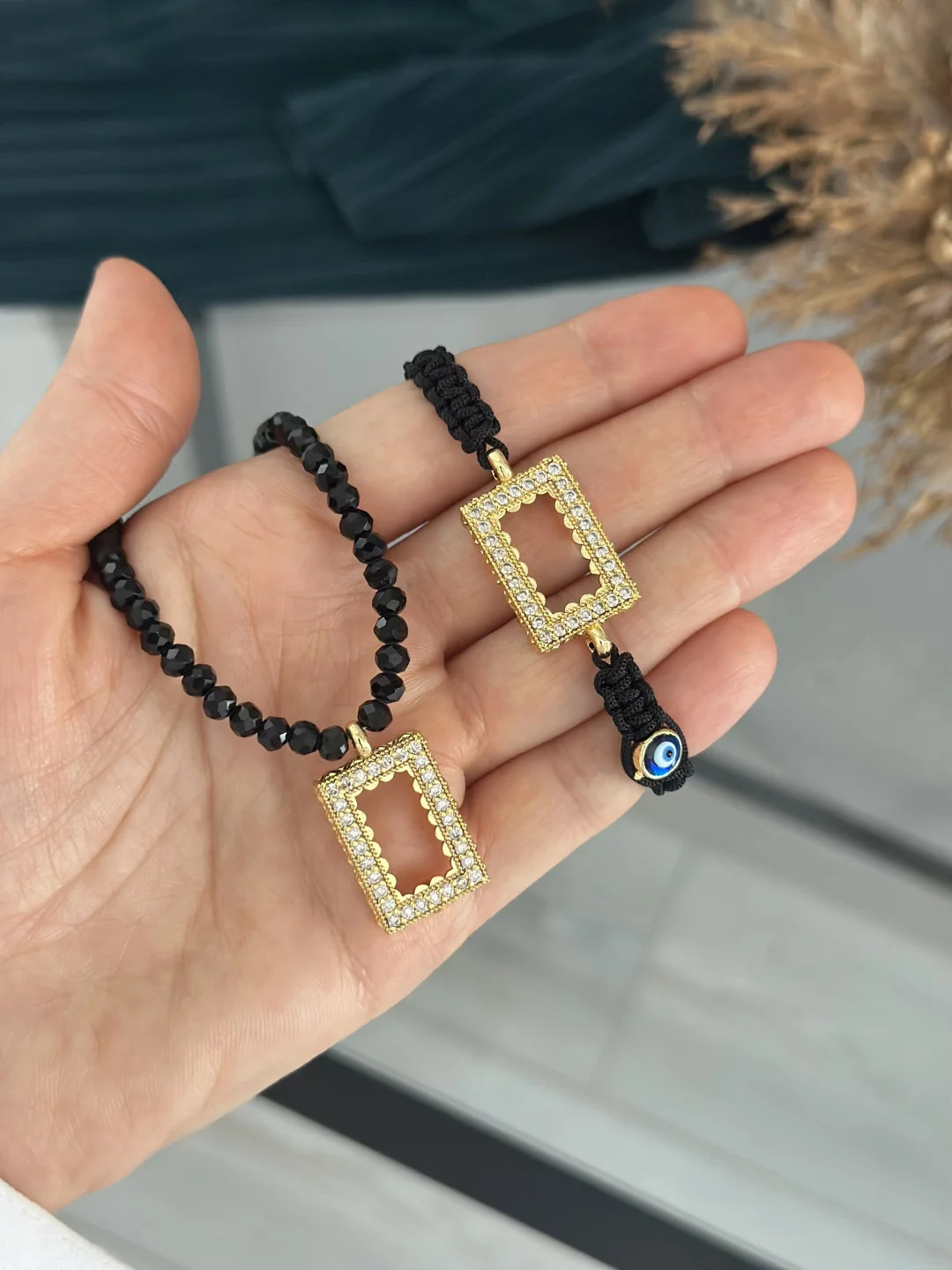 Bileklik Malzemesi: Dayanıklı Siyah Makrome İp (Asansörlü/Ayarlanabilir).