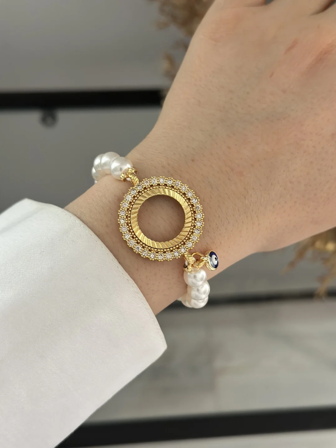 Hem Yatırım Hem Aksesuar: İncili Çeyrek Altın Bileklik (Nazar Boncuklu & Suyolu Hediyeli) ✨