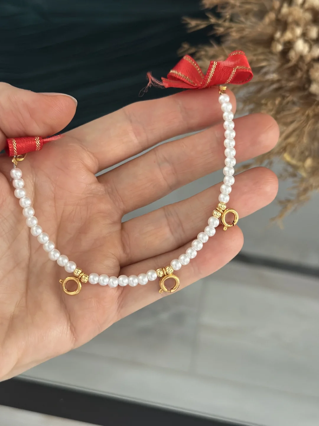 Malzeme: İnci Görünümlü Boncuklar / Kırmızı Saten Kurdele