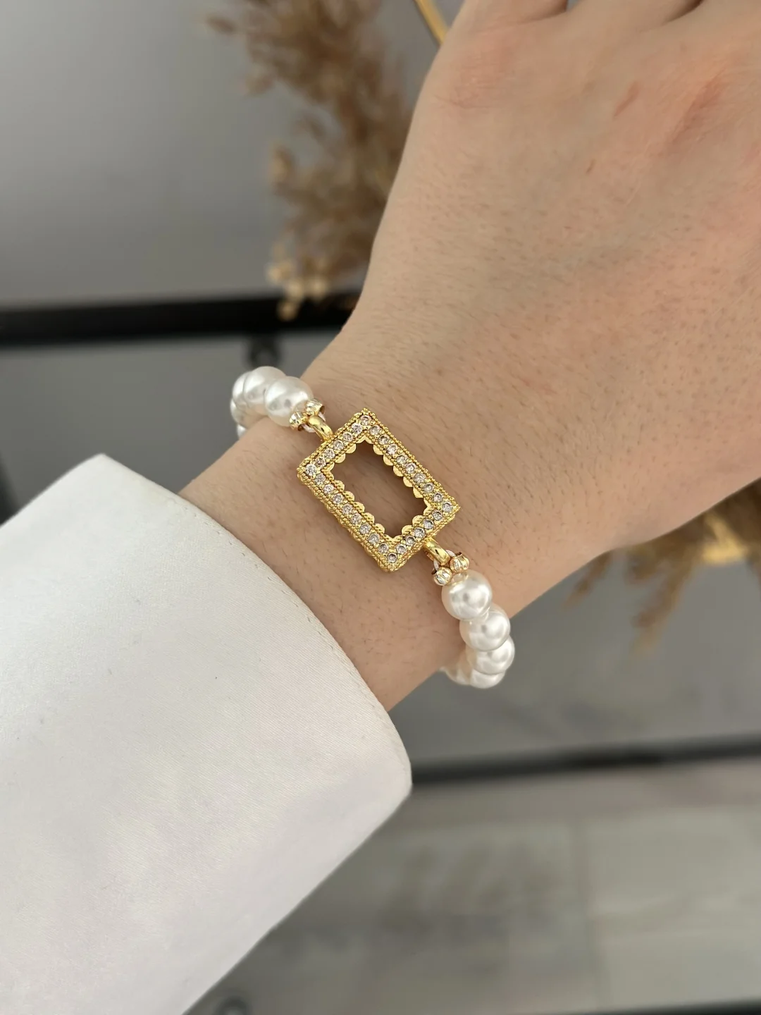 Modern ve Asil: 1 Gram Altınlık Dikdörtgen İncili Bileklik (Suyolu Hediyeli) ✨