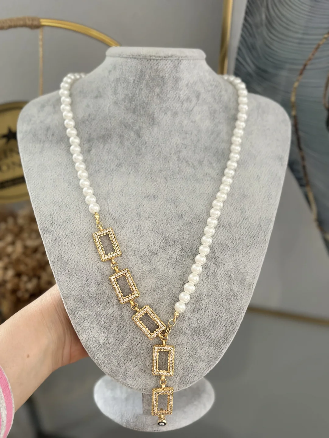 5'li Y Kolye: Boynunuzdan süzülen 5 adet taşlı çerçevesiyle (5 gram altın kapasiteli) dekoltenize zarafet katar.