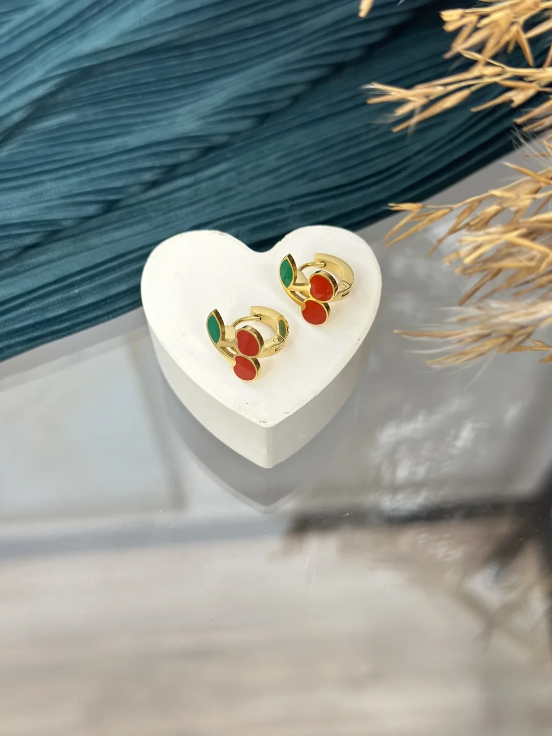 Bombeli Çizgi Dokulu Taşlı Halka Küpe (Hafif yapılıdır)