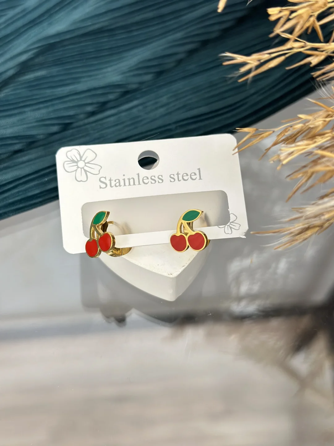 Pembe Kelebekli Çelik Çocuk Küpesi