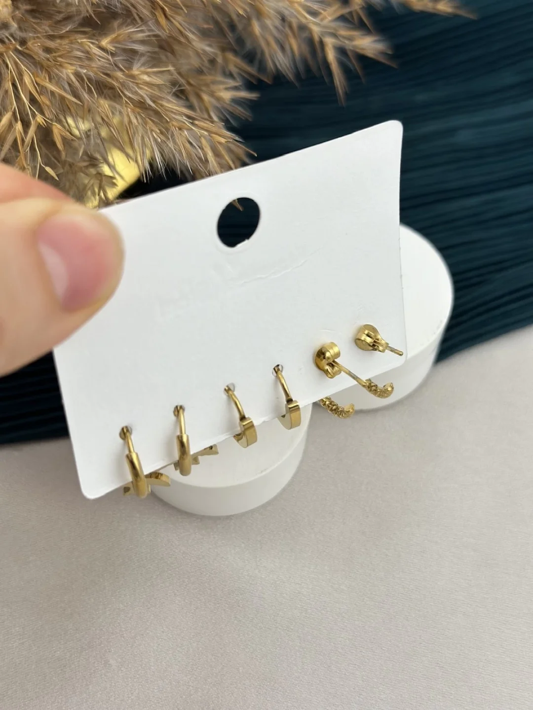 Taşlı Yıldızlı Dikdörtgen Halka Küpe