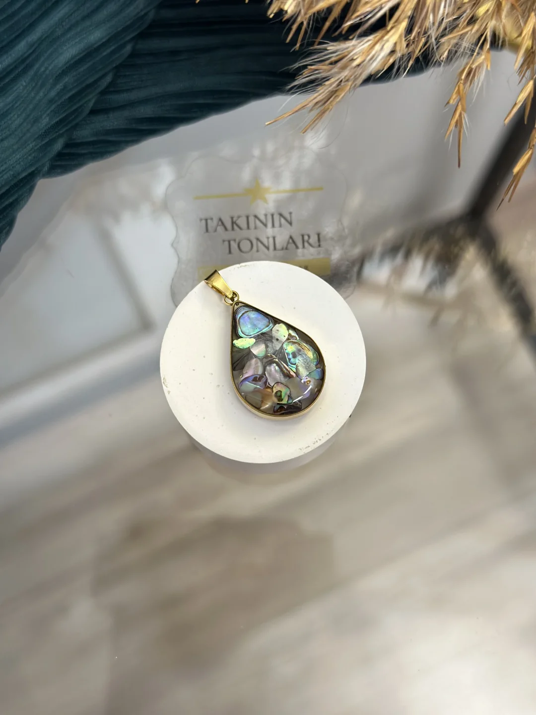 Labradorit Taşı Doğal Taş Damla Model Çelik Kolye Ucu