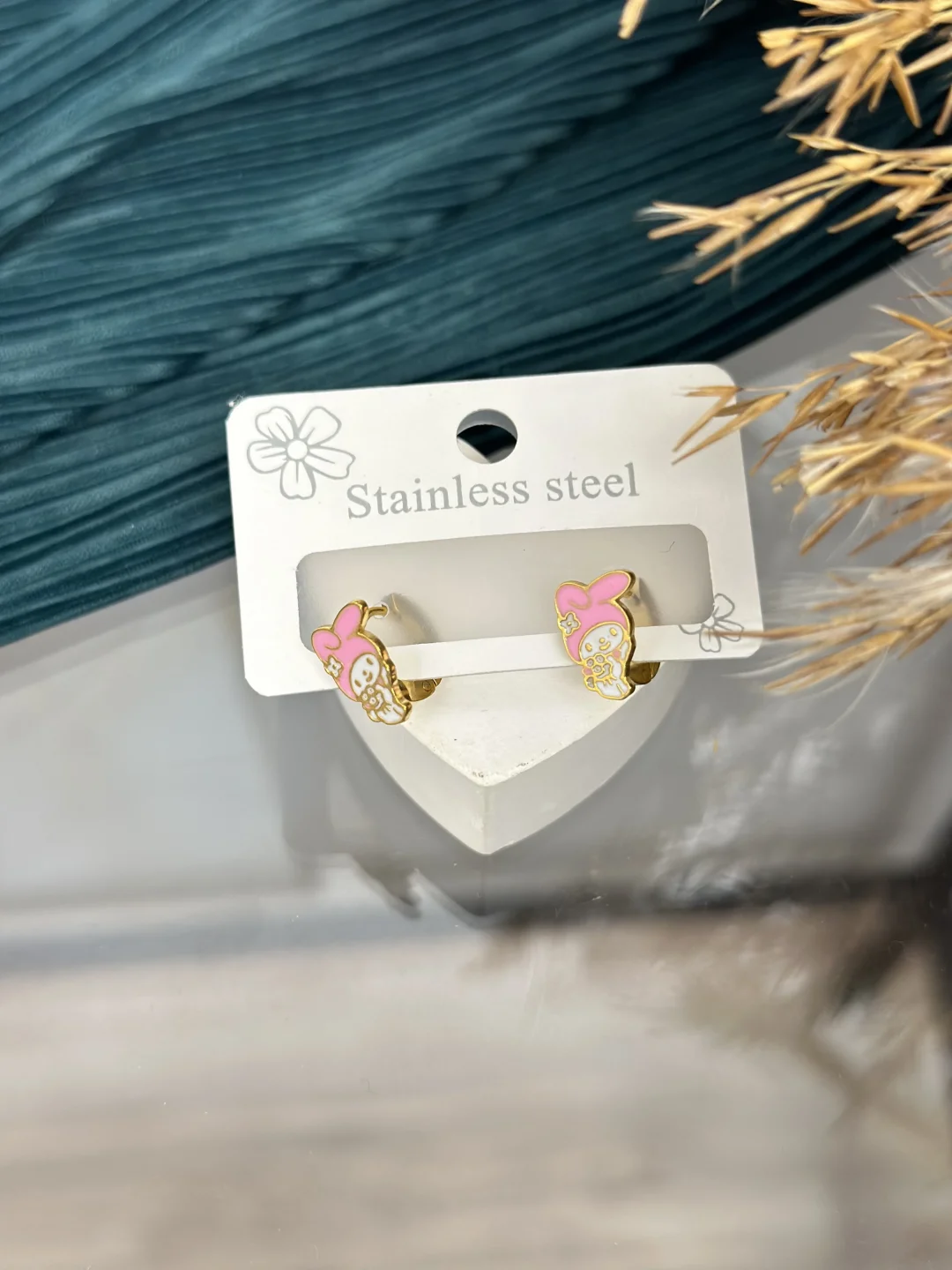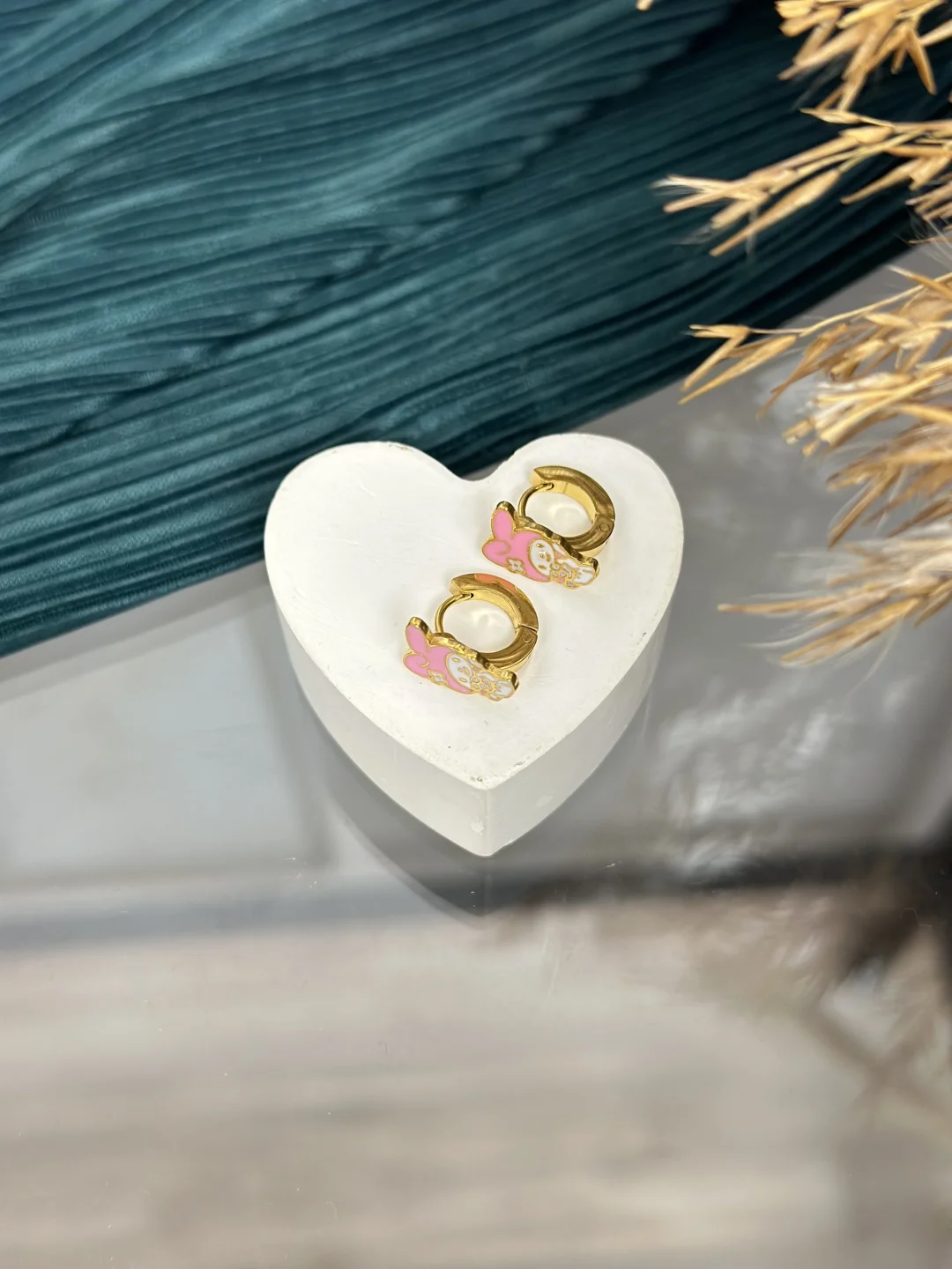 Pembe Kelebekli Çelik Çocuk Küpesi