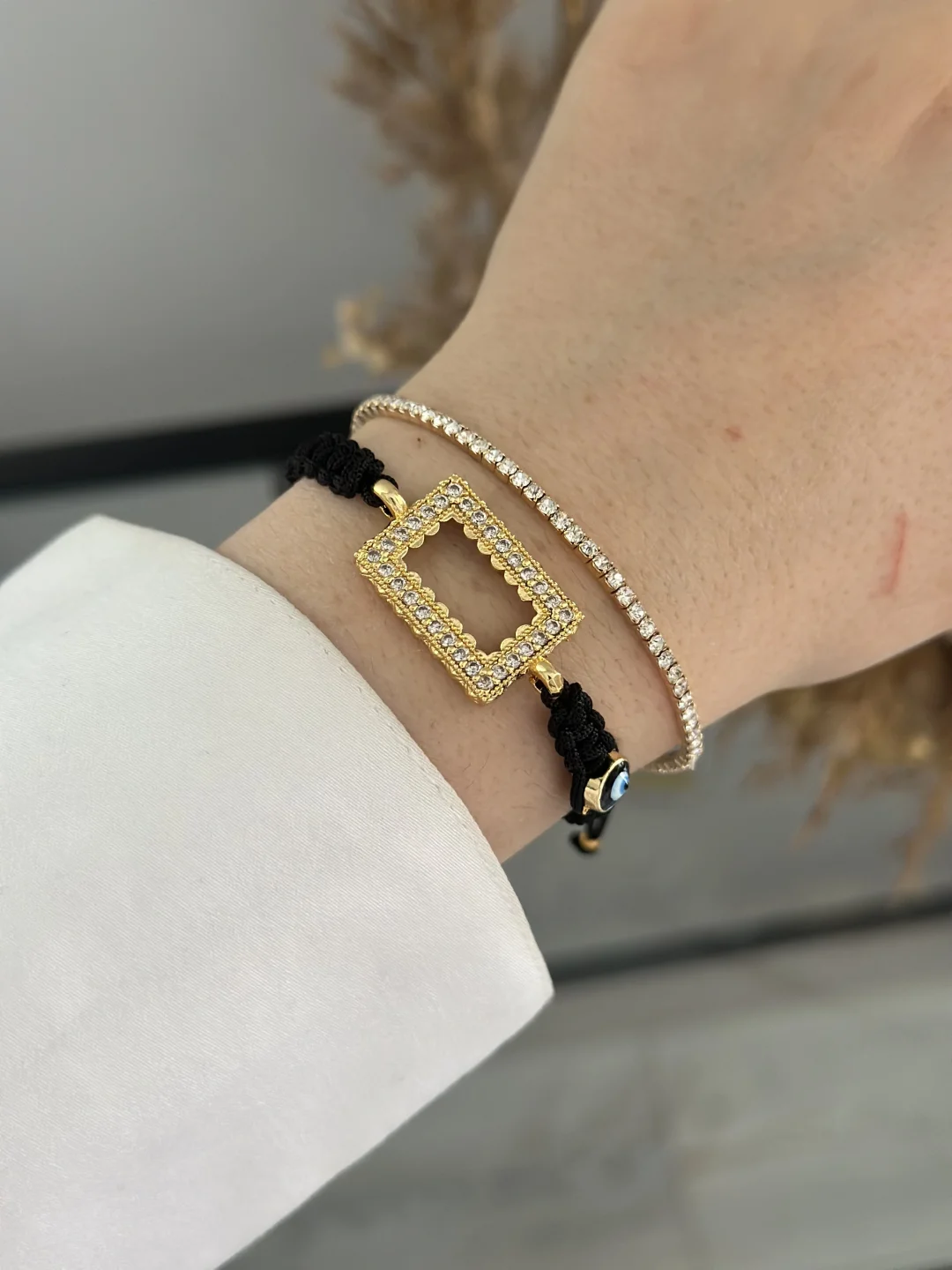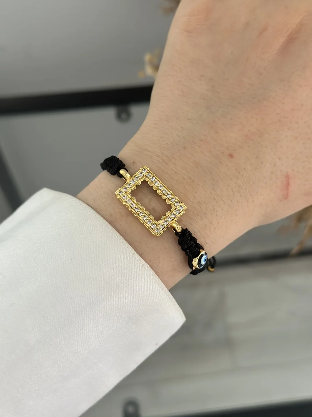 Spor, şık ve nazardan uzak! 1 Gramlık (dikdörtgen) külçe altınlarınızla uyumlu, taşlı dikdörtgen çerçeveye sahip Siyah Makrome Bileklik. Özel el örgüsü kordonu ve ucundaki nazar boncuğu sallantılarıyla bileğinizde modern bir duruş sergiler. Ayarlanabilir asansörlü yapıdadır. Yanındaki Suyolu Bileklik Hediyesiyle birlikte şimdi çok avantajlı!