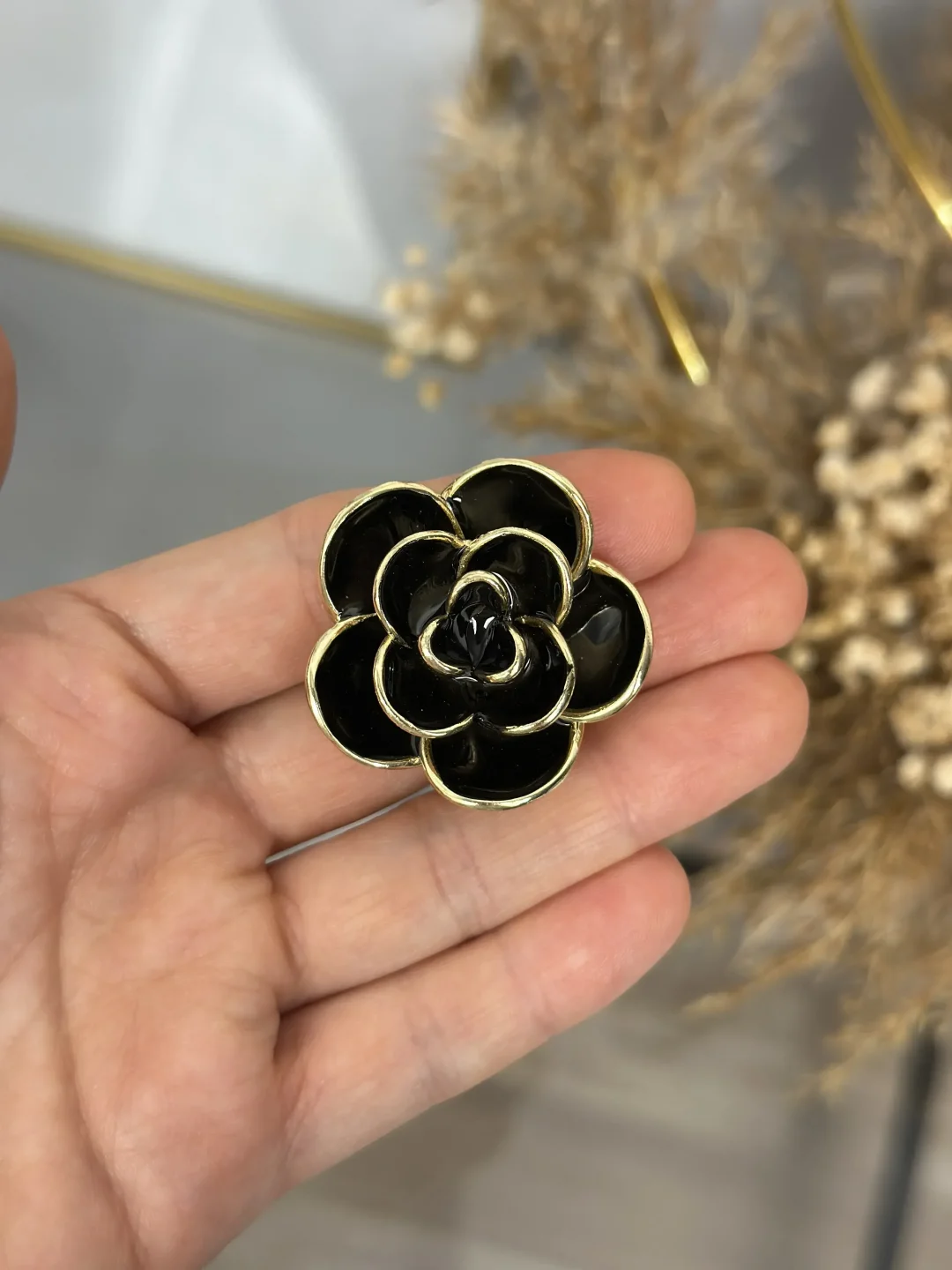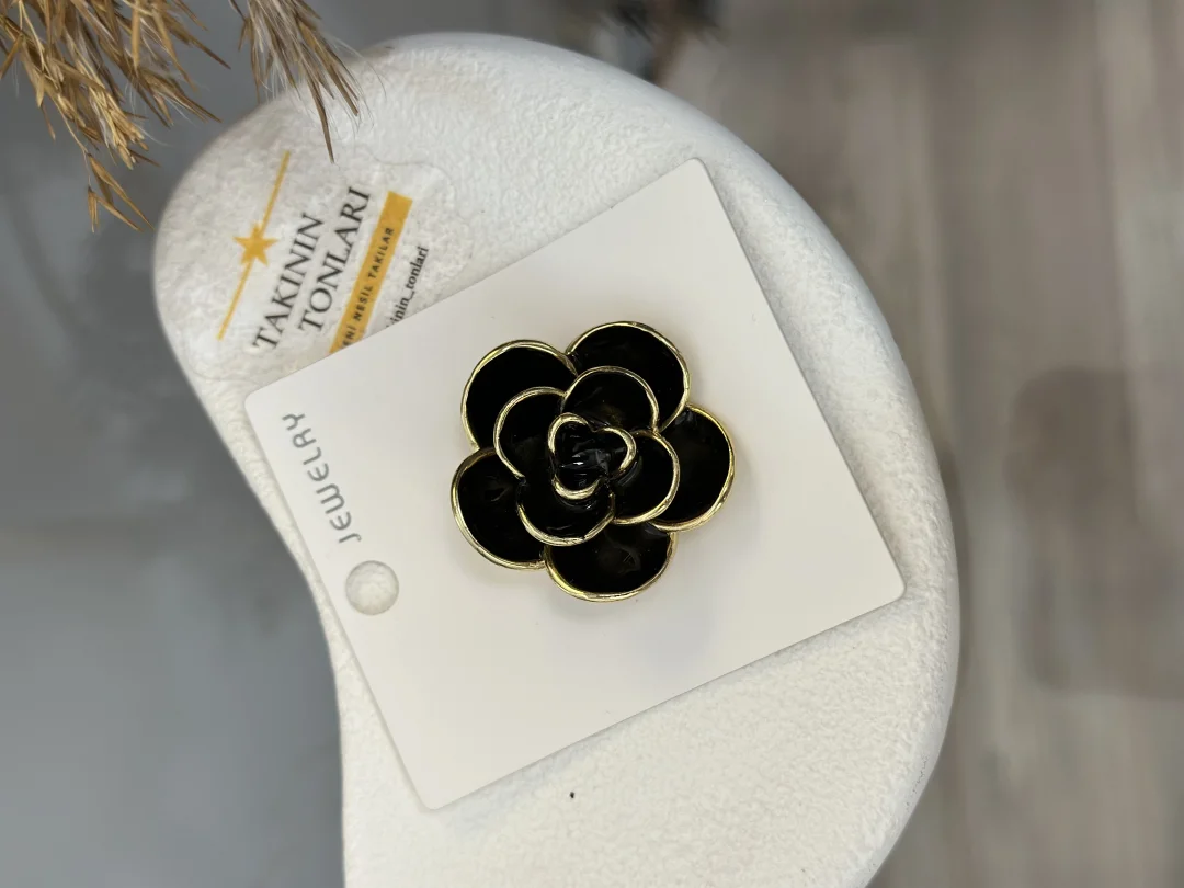 Siyahın asaleti, altının ışıltısı ve gülün zamansız formu bu eşsiz broşta buluştu! "Üç Boyutlu" yapısı ve parlak siyah minesiyle stilinize hem sofistike hem de modern bir dokunuş katacak.