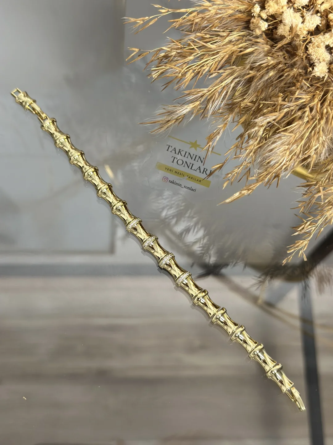 ✔Göz Alıcı "Kemik & Taş" Tasarımı: Kemik (bambu) formundaki parlak baklalar, aralarındaki 1. Sınıf AAA+ Zirkon taşlarla süslenmiş halkalarla birleşerek muhteşem bir ışıltı yaratır.